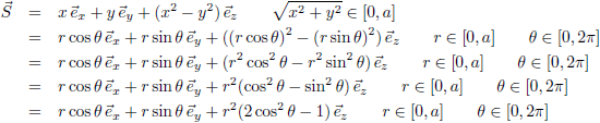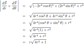 Ik bepaal eerst de partiële afgeleiden:Vervolgens neem ik het uitwendig product van deze twee vectoren: