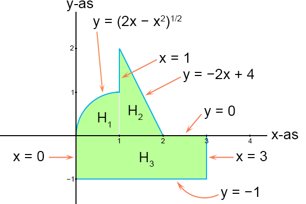 Deel het in de figuur hieronder getekende normale gebied op in elementaire gebieden door ze in het