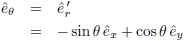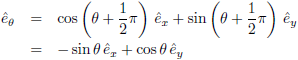 Schrijf de locale ‘polaire’ eenheidsvectoren er en eθ in