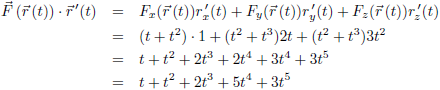 Uit de parametrisering van de kromme kunnen we aflezen:Waaruit volgt voor het vectorveld: