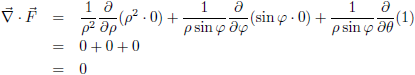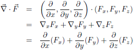 Het vectorveld F (dwarsdoorsnede voor z = 0)In dit geval wordt de divergentie dan: