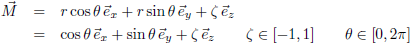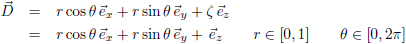 Voor de bodem geldt een constante z = −1 en een straal r die varieert van 0 tot 1: