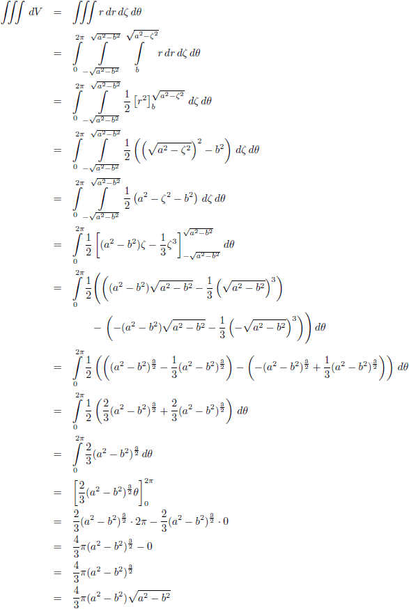 Voor de bol geldt:Mijn regel is: dit is een omwentelingslichaam om de z-as dus over naar cilindercoördinaten: