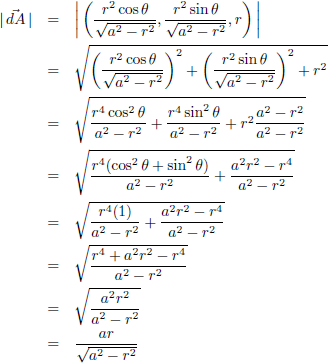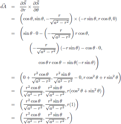 De vector dA volgt uit het uitwendig product van de raakvectoren: