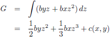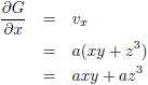 Door de gevonden waarden voor a en b in te vullen in de vergelijkingen voor G, die we hierboven door integratie verkregen hebben, vinden we de potentiaalfunctie: