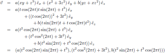 Jawel, maar dat is uiteraard (veel) meer werk. De recht-toe-recht-aan manier is om uit de parametrisering van de kromme k de x, y en z-waarden af te lezen en die te gebruiken om het vectorveld v om te schrijven:Vervolgens nemen we de afgeleide van r: