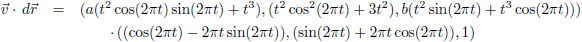 Omdat het veld conservatief is hebben we een potentiaalfunctie gevonden en die kunnen we gebruiken om de bovenstaande integraal te berekenen. Eerst berekenen we r voor minimale en maximale t: