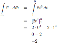 Nu heb ik een heerlijk eenvoudige integraal (en let op de integratiegrenzen want ik eindig in de oorsprong):