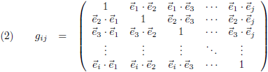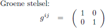 Tenslotte wil ik nog opmerken dat de covariante versie van de metrische tensor gevormd wordt door de