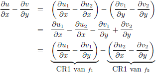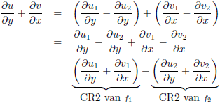 De Cauchy-Riemann-vergelijkingen luiden (die ik hierna aanduid met CR1 en CR2):
