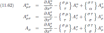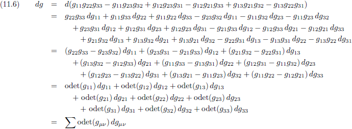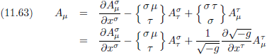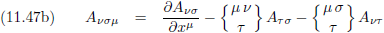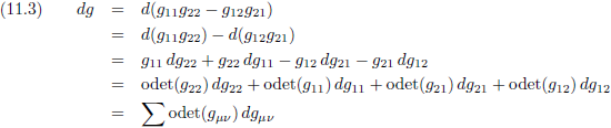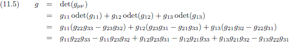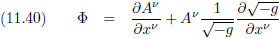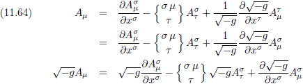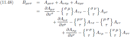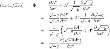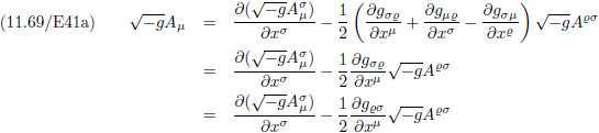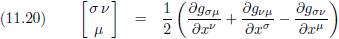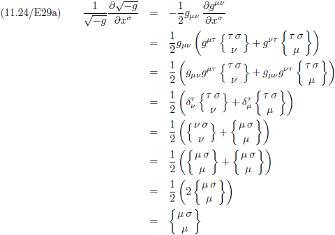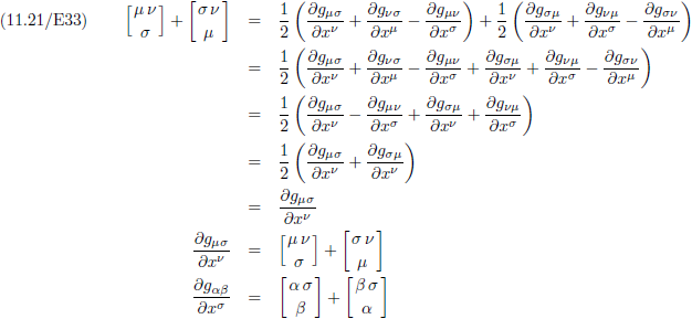 Met behulp van vergelijking (11.24/E29a) kan het Christoffel-symbool in de rechterterm omgeschreven worden tot: