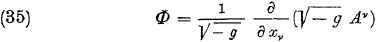 Door de dummy index van de rechterterm te hernoemen en alles te vermenigvuldigen met √(−g) ontstaat: