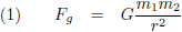 De zwaartekracht (gravitatie) die twee lichamen op elkaar uitoefenen wordt gegeven door een wet van Newton: