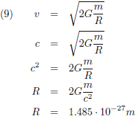 Als ik hierin de massa van de Zon invul voor m dan volgt daaruit een R van iets minder dan 3 km. Nadat Einstein in 1915 zijn algemene relativiteitstheorie had voltooid lukte het Karl Schwarzschild nog datzelfde jaar om een oplossing te vinden voor de vergelijkingen van Einstein. Uit zijn oplossing kwam duidelijk naar voren dat indien een lichaam een straal heeft waarvoor bovenstaande relatie geldt, dat er dan ‘rare dingen gebeuren’ (een noemer van zijn oplossing wordt gelijk aan nul). Tegenwoordig staat dit bekend als de Schwarzschild-straal en de ‘rare dingen’ zijn nu wereldberoemd als zwarte gaten.
