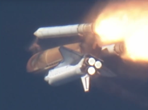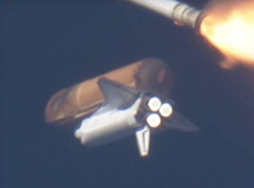de Space Shuttle af te werpen is deze opname gemaakt, de kamera is