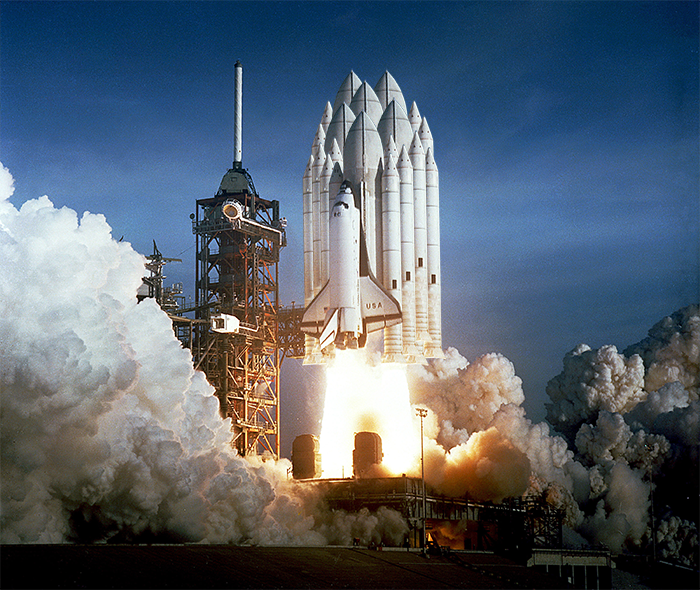 op de Space Shuttle met de tank met vloeibare brandstof