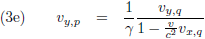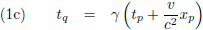 Daarvoor hebben we wat gereedschap nodig. Ik pak de Lorentz-transformaties erbij voor twee stelsels, P en Q, die met een snelheid v ten opzichte van elkaar bewegen:
