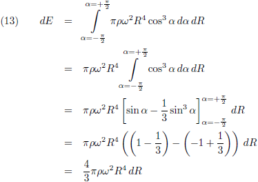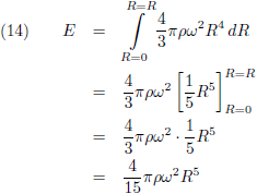 Door R te laten variëren van 0 tot R neem ik alle bolschillen samen en vind ik de rotatie-energie van de gehele bol.