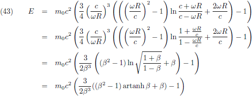 De vraag was echter om de rotatie-energie uit te rekenen, daarom moet ik de rustenergie nog in mindering brengen: