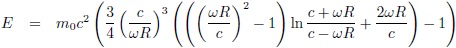 In onderstaande grafiek heb ik de rotatie-energie van de bol uitgezet als functie van ωR/c.