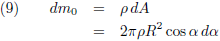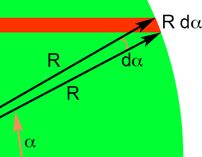 Het bandje is infinitesimaal hoog (of breed, net hoe je het noemen wilt) en sluit daardoor een infinitesimaal hoekje dα in.