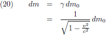 Want dan komt voor de massa de Lorentz-factor γ er bij in: