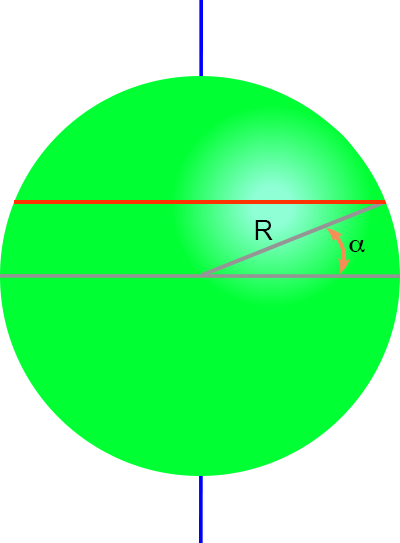 en tevens definieer ik een hoek α tussen dit bandje en de ‘evenaar’ van de bol.