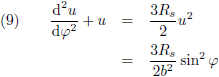 Vergelijking (4) is het newtoniaanse equivalent en de term aan de rechterkant is dus een relativistische