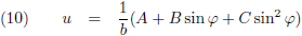 Door de gevonden waarden van A en C in te vullen (voor B vul ik simpelweg nul in) in vergelijking (10)