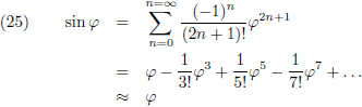 In een eerste orde benadering is sin φ dus gelijk aan φ: