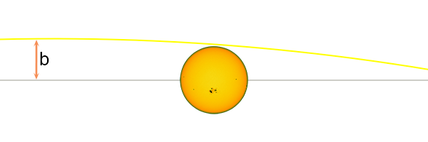 geodetische lijn van een lichtstraal rondom een puntmassa