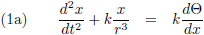 (die bevat de verstorende invloed van een derde object) en de rechterleden van de bovenstaande