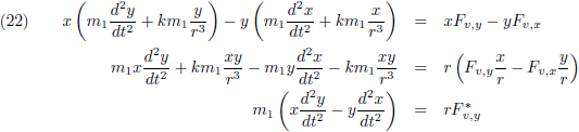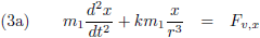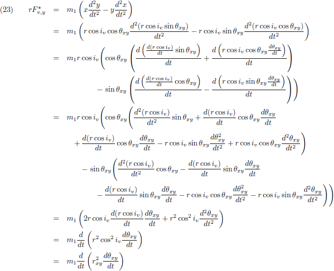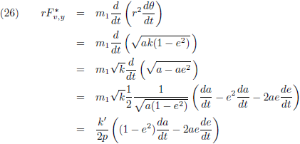 Door de vergelijking (16) van (13) af te trekken krijg ik de verstorende term, de versnelling die ontstaat als gevolg van storende