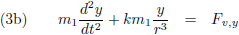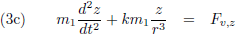 vergelijkingen zijn daarom respectievelijk de x, y en z-component van de verstorende kracht:
