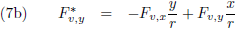 (de eerste index v staat voor verstoring en de tweede index v staat voor de richting van de kracht, in dit geval in de richting van de