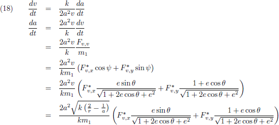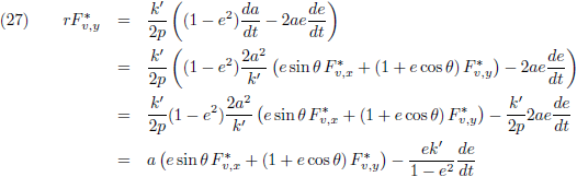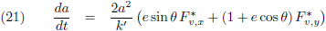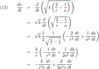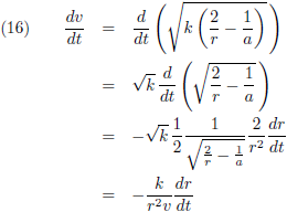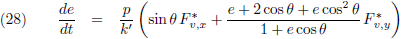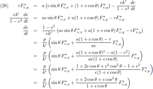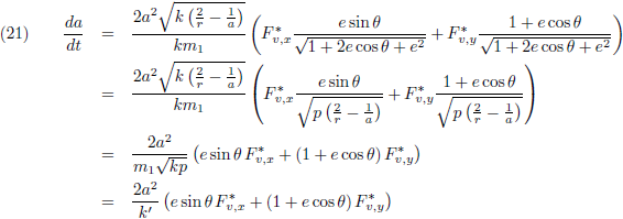 De variaties van a en e kan ik invullen vanuit de vergelijkingen (21) respectievelijk (28) om de vergelijking