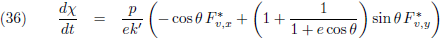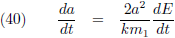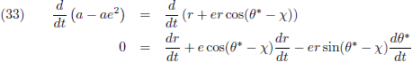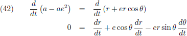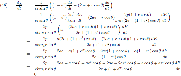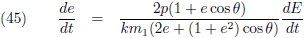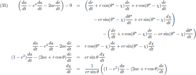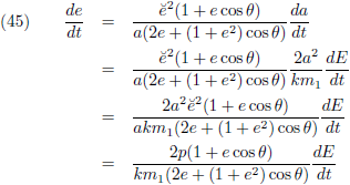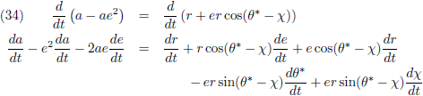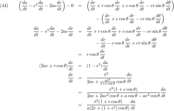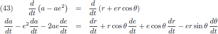 De variaties van a en e (de vergelijkingen (40) respectievelijk (45)) kan ik invullen in (35) om de vergelijking