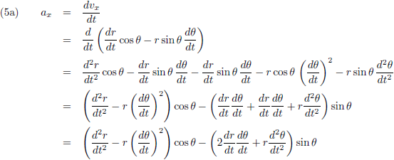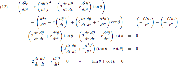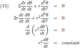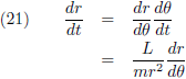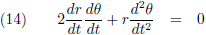 Ik heb het vanaf nu gewoon over r en θ zonder de functie-van-t aanduidingen erbij.