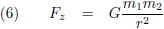 De kracht tussen de beide objecten is de zwaartekracht en die wordt beschreven volgens deze wet van Newton: