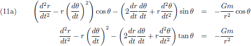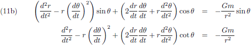 Beide objecten hebben een onderlinge afstand r, we plaatsen de Zon in de oorsprong (en die blijft daar ook omdat de secundaire massa,