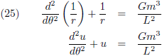 via allerlei omweggetjes omgeschreven van drie variabelen (r, t en θ) naar twee variabelen (u en θ).