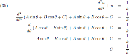 Om te beginnen substitueer ik de oplossing (34) in de vergelijking (27):