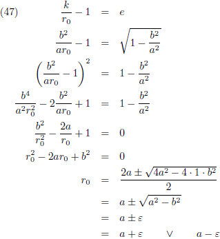 Met a als de halve lange as, b als de halve korte as en ε als de
