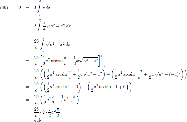 van −a tot +a bereken ik de oppervlakte van de ellips.