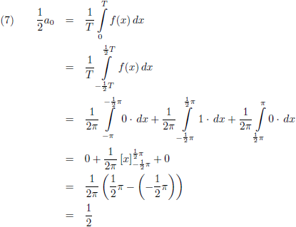 De eerste term ziet er als volgt uit (waarbij ik het gemiddelde 1/2 a