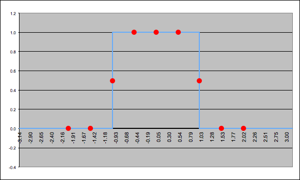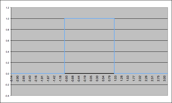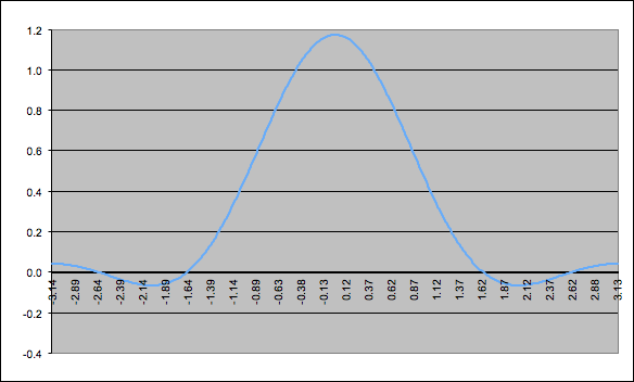 Dat laatste laat zich (veel) gemakkelijker bewijzen indien ik het pulsje niet van −1 tot +1 laat lopen.