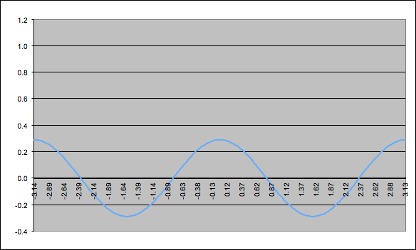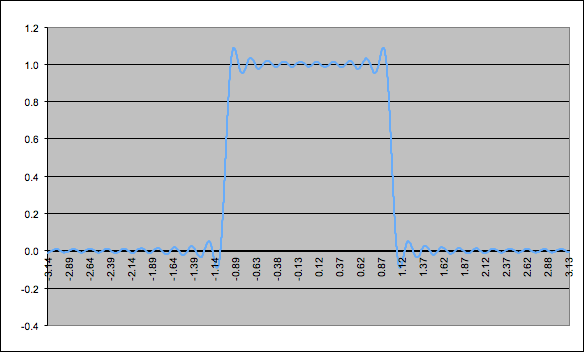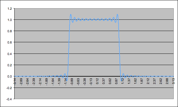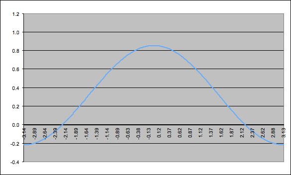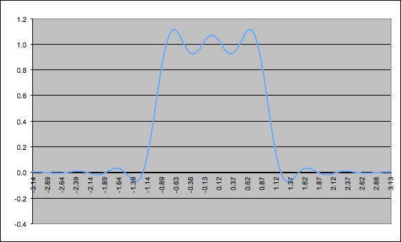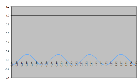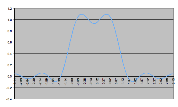 Ik had het pulsje bijvoorbeeld ook van x = −1/2 π tot x = +1/2 π kunnen laten lopen (bij dezelfde periodetijd van 2π).