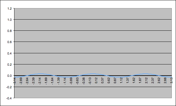 Oftewel, voor 3/4 π en −3/4 π komt er echt wel nul uit.