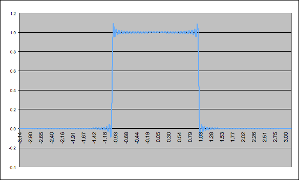 Daarmee wordt de Fourier-getransformeerde van het pulsje aldus:
