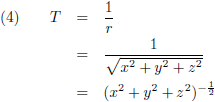 En r is de afstand tot de oorsprong, en in die oorsprong bevindt zich het punt waarvan ik de potentiaal
